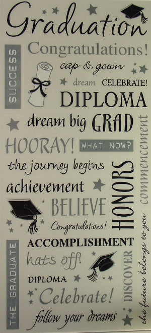 Use these clear Mylar stickers, borders and alphabets to create easy scrapbooking pages! Size: 5 1/2" x 12"